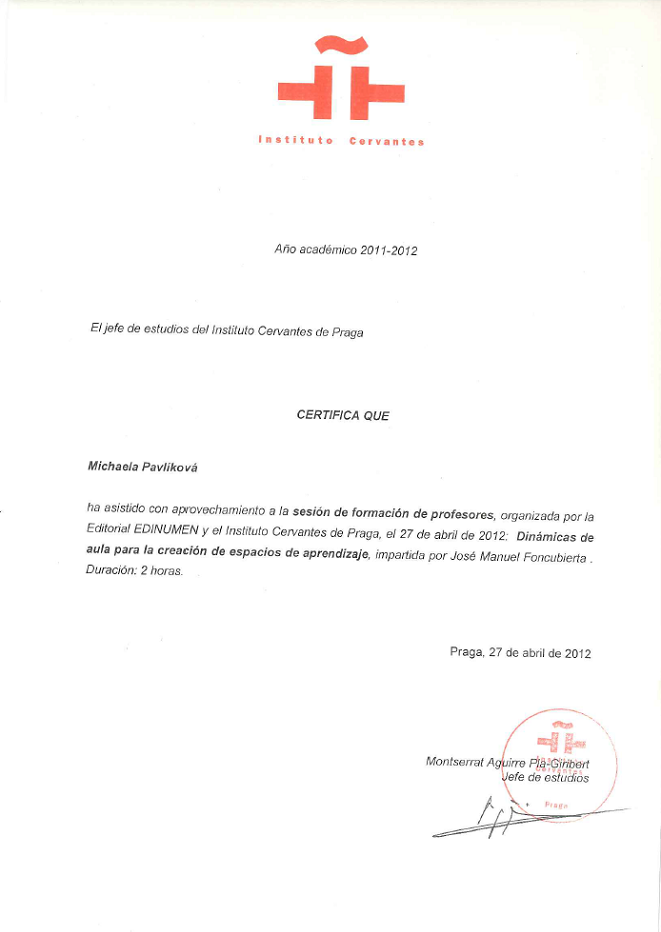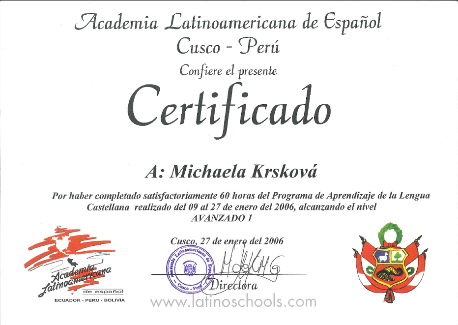 V roce 2006 jsem absolvovala studijní pobyt v Peru v Cuscu na Academia Latinoamericana de Español.